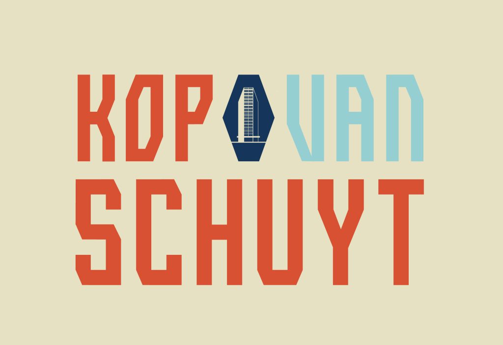 Al zichtbaar van veraf, door een hoogteaccent van 50 meter, een iconisch gebouw en baken van de omliggende woonwijk en van veraf zichtbaar: Kop van Schuyt. Een aanbesteding waar we het concept, het ontwerp en de uitwerking voor gerealiseerd hebben. De kenmerkende lijnen en vormen van het gebouw waren het vertrekpunt voor het logo en de typografie.